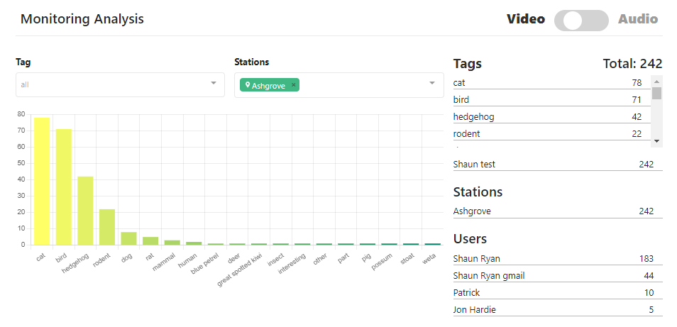 A screenshot of the Cacophony Project's Tagging Stats, which displays how many tags you or your teammates have added to the project[12].